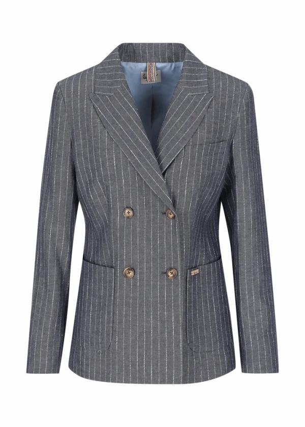 - Dieser halbgefütterte, etwas länger geschnittene Blazer im Regular Fit mit Reverskragen und doppelter Knopfleiste besteht aus einer angenehmen Mischung aus Baumwolle und Leinen mit Nadelstreifen.