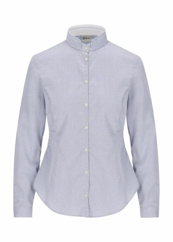 - Diese Bluse im Slim Fit wirkt schlicht, doch bei genauerem Hinsehen offenbart sich ihr Wiedererkennungsmerkmal: der doppelte Stehkragen. Die seitlichen Nähte betonen die Figur und verleihen der Bluse ihren femininen Charakter.