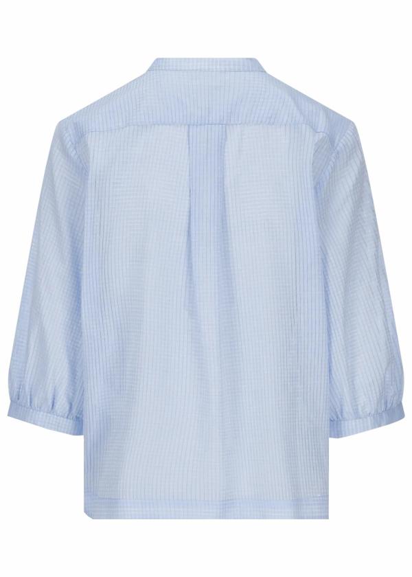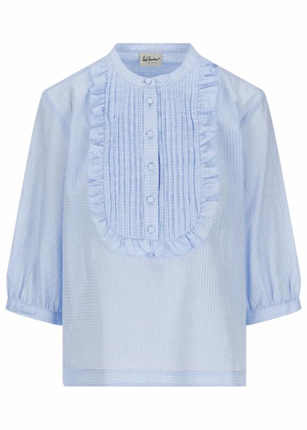 - Diese Bluse im Comfort Fit mit Rundhalsausschnitt und weiten Ärmeln in Dreiviertellänge besteht aus einem leichten, transparenten Baumwollstoff. Das plissierte Plastron mit Rüschensaum und die mit Stoff überzogenen Knöpfe an der kurzen Knopfleiste sind die Details, die sie auszeichnen.