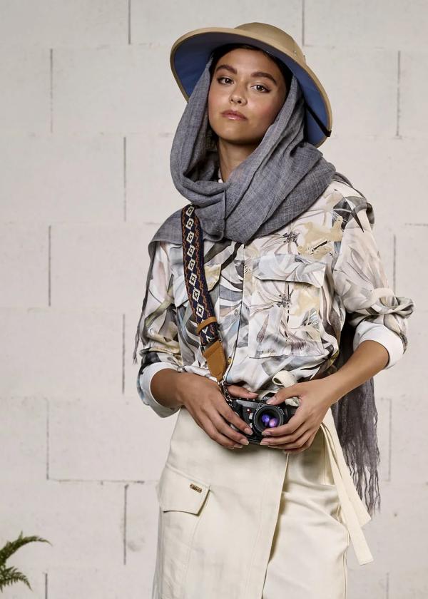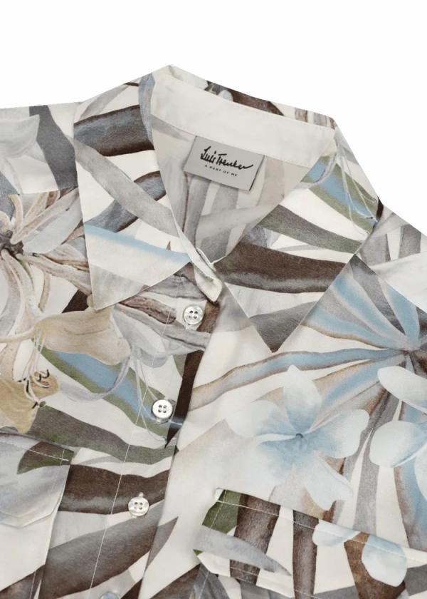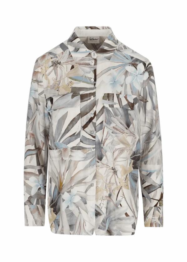 - Französischer Kragen, durchgehende Knopfleiste mit Perlmuttknöpfen