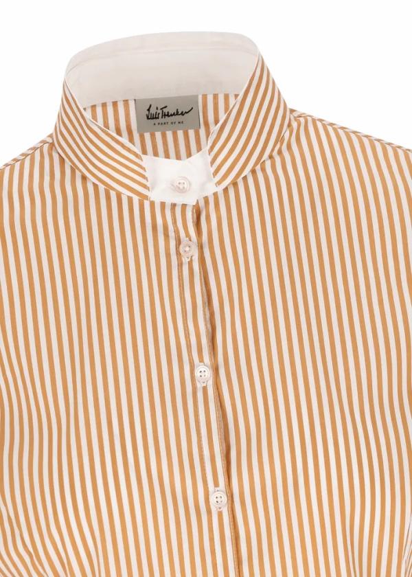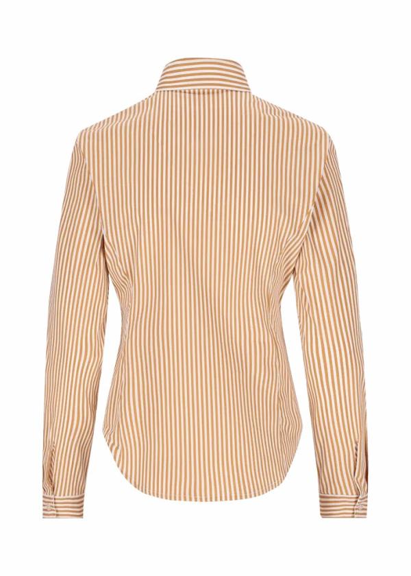 - Diese Bluse im Slim Fit mit doppeltem Stehkragen und durchgehender Knopfleiste besteht aus einer angenehmen Baumwollmischung mit Stretchanteil und ist durch ihre zarten vertikalen Streifen und ihren taillierten Schnitt ein feminines Lieblingsteil.