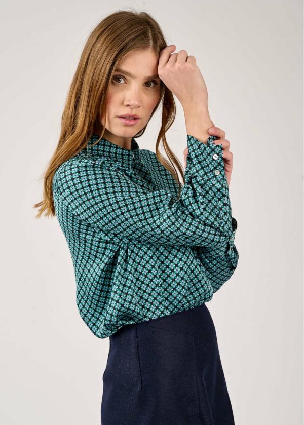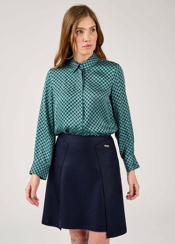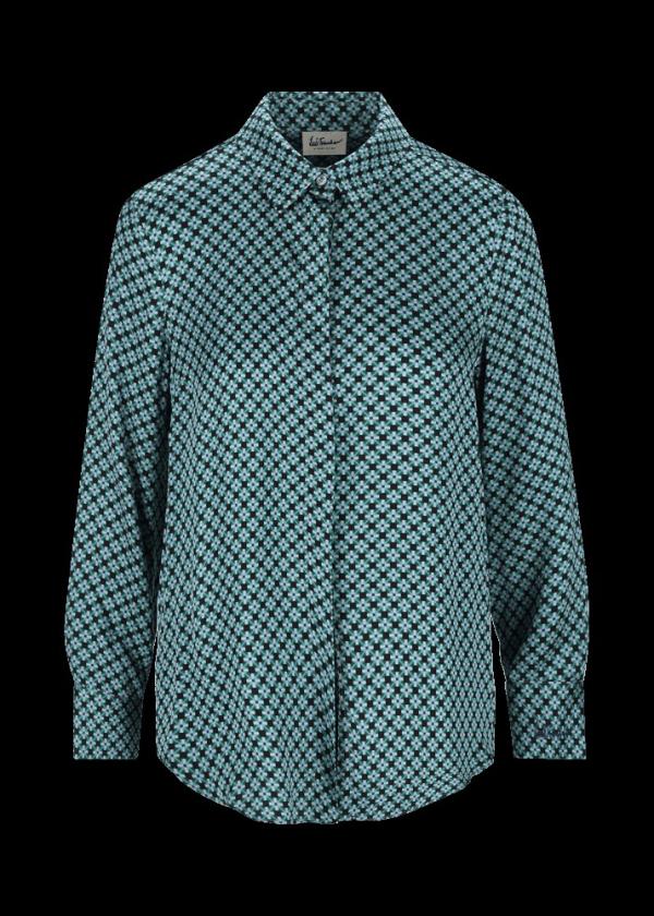- Diese Bluse im Regular Fit mit Kentkragen besteht aus reiner Viskose, verarbeitet zu einem edel glänzenden Satin mit floral inspiriertem Muster, und zeichnet sich durch ihre verdeckte Knopfleiste, sowie die etwas weiteren Ärmel aus.