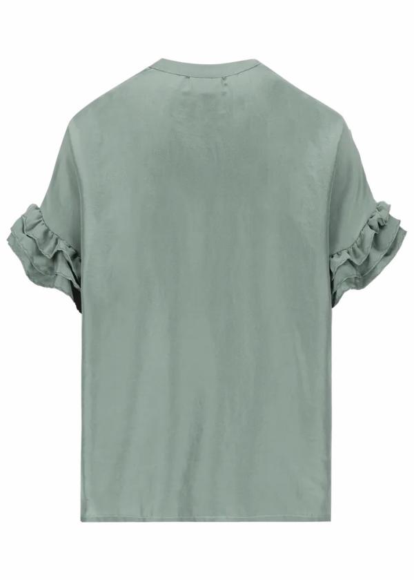 - Diese Bluse im Regular Fit mit kurzen Ärmeln, Rundhalsausschnitt durchgehender Knopfleiste besteht aus reiner, stückgefärbter Seide. Die bestickten Volants an den Ärmeln sind ihr Markenzeichen und verleihen ihr eine verspielte Note.