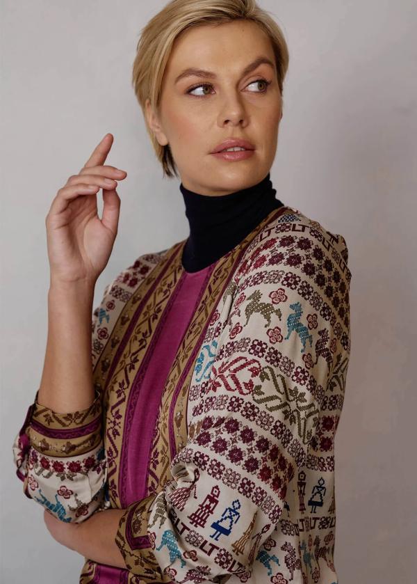 Besonderheiten: Reine Viskose für ein angenehmes Tragegefühl, exklusiv für Luis Trenker designtes Muster, tropfenförmiger Ausschnitt mit Knopfverschluss am Rücken - Unser Model Chantal ist 1,78 m groß und trägt Größe S.