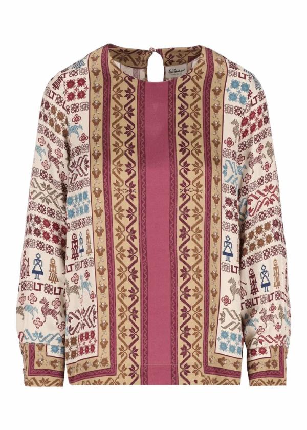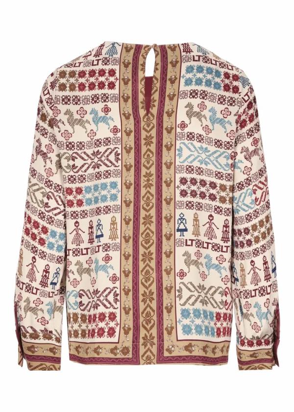 - Diese Bluse im Regular Fit mit Rundhalsausschnitt besteht aus reiner Viskose und ist mit einem einzigartigen, exklusiv für Luis Trenker entworfenen Motiv bedruckt. Die weiten Ärmel, sowie der tropfenförmige Ausschnitt mit Knopfverschluss am Rücken schenken ihr zusätzliche Raffinesse.