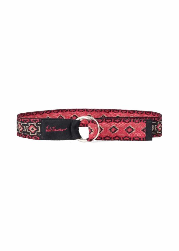 - Dieser Gürtel aus Baumwolle mit gewebtem, exklusiv für Luis Trenker designtem Ethnomotiv wird mit zwei metallischen Ringen geschlossen. Der Wildlederbesatz mit gesticktem Luis Trenker Logo in Kontrastfarbe ist ein zusätzliches, hochwertiges Detail.