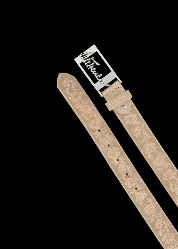 - Dieser Gürtel besteht aus echtem Glattleder, hat eine charakteristische Kastenschnalle aus Metall mit Luis Trenker Logo und verleiht durch seine florale Prägung jedem Outfit einen femininen Touch.