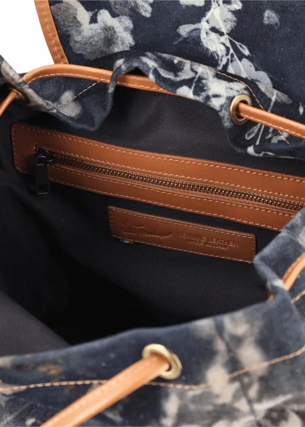 - Dieser in Italien gefertigte Rucksack zeichnet sich durch seinen außergewöhnlichen Materialmix aus: Am Körper besteht er aus Cord mit floralem Muster, während die Klappe des Hauptfachs und jene der aufgesetzten Taschen aus einem glatten Baumwollstoff gefertigt sind. Die Details aus cognacfarbenem Echtleder, die praktischen Magnetverschlüsse und die aufgesetzten Taschen aus einfarbigem Cord machen ihn zu Deinem neuen Lieblingsaccessoire.