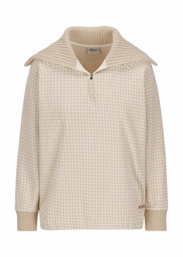 - Dieses Sweatshirt im Comfort Fit mit extrabreitem Kragen und kurzem Reißverschluss besteht aus einem kuschelig-weichen Baumwoll-Viskose-Mix mit Hahnentrittmuster.