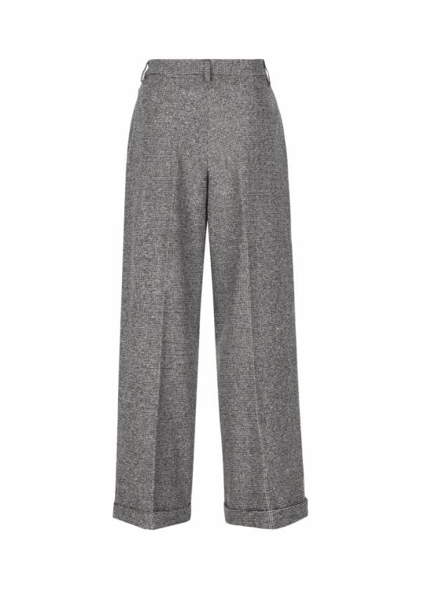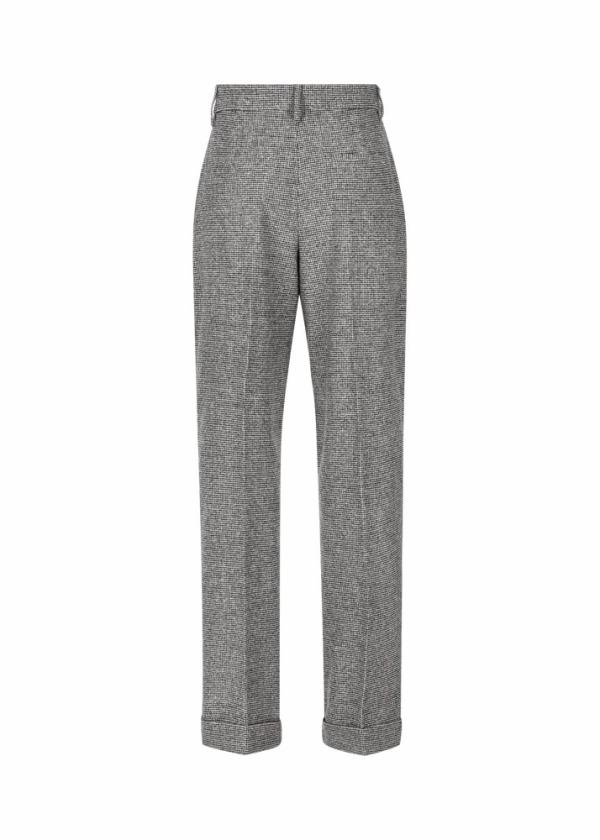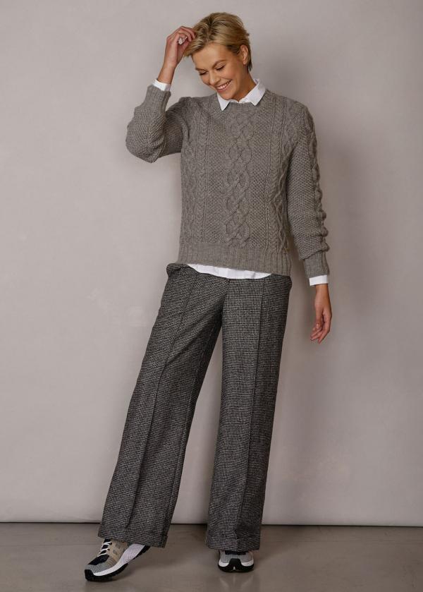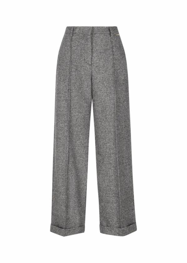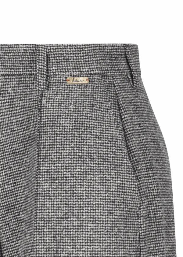 Besonderheiten: Angenehme Wollmischung mit Hahnentrittmuster, reliefartig hervorstehende Mittelnaht, Saumumschlag, Logoplakette in Hornoptik links am Bund - Unser Model Chantal ist 1,78 m groß und trägt die italienische Größe 42.