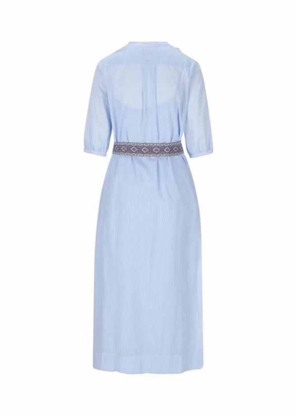 Taschen: Zwei seitliche Eingrifftaschen - Besonderheiten: Leichtes, transparentes Baumwoll-Devoré, abnehmbarer Stoffgürtel im Ethno-Look mit Quastenabschluss, Plastron mit Plissee und Volants