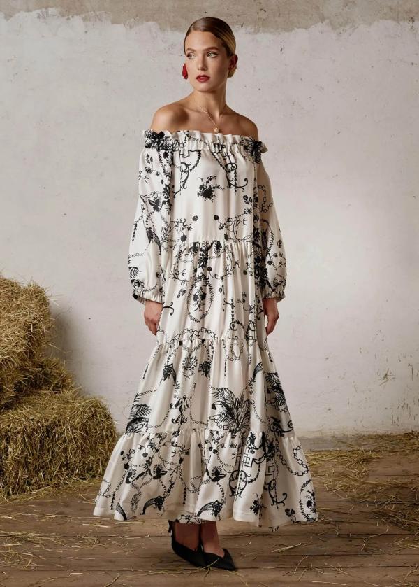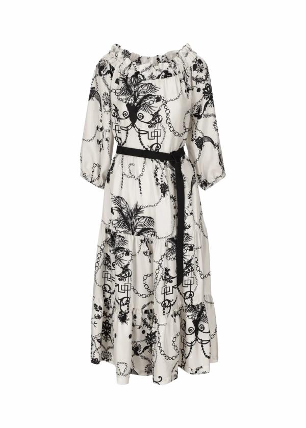 - Dieses lange Hemdblusenkleid im Regular Fit mit weitem U-Boot-Ausschnitt und Ballonärmeln in Dreiviertellänge besteht aus reiner Seide mit exklusiv für Luis Trenker designtem Print. Das schulterfreie Oberteil ist anliegend, der gerüschte Rock hingegen leicht ausgestellt. Ein Gummizug an Ausschnitt und Ärmelabschluss sorgt für Tragekomfort, der schmale Taillengürtel aus Wildleder für ein elegantes Finish.