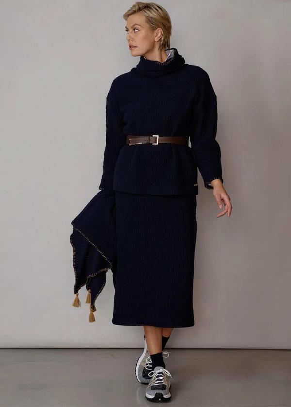 Besonderheiten: Schurwolljersey mit extra Tragekomfort, Taschen mit dekorativer Stickerei im Schlingstich in Kontrastfarbe, Logoplakette in Hornoptik links am Bund - Unser Model Chantal ist 1,78 m groß und trägt die italienische Größe 42.