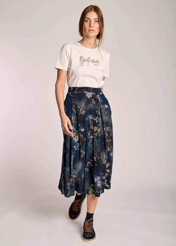- Dieser ungefütterte Midirock im Regular Fit mit Kellerfalten und seitlichem Reißverschluss besteht aus reiner Baumwolle, verarbeitet zu feinem Cord mit einem floralen Print, der an eine Wildblumenwiese im Mondlicht erinnert.