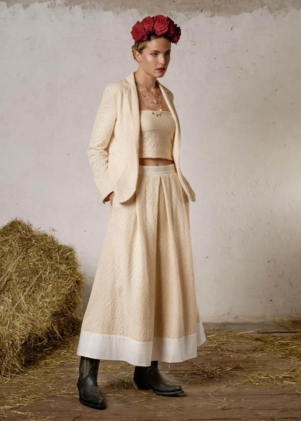 Damen Röcke | Luis Trenker Langer Rock Aus Baumwolljersey-Spitze Lumarzia Creme
