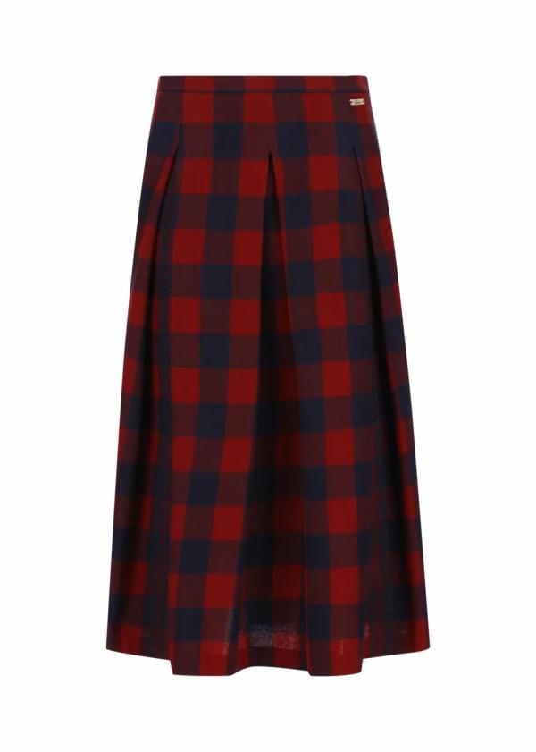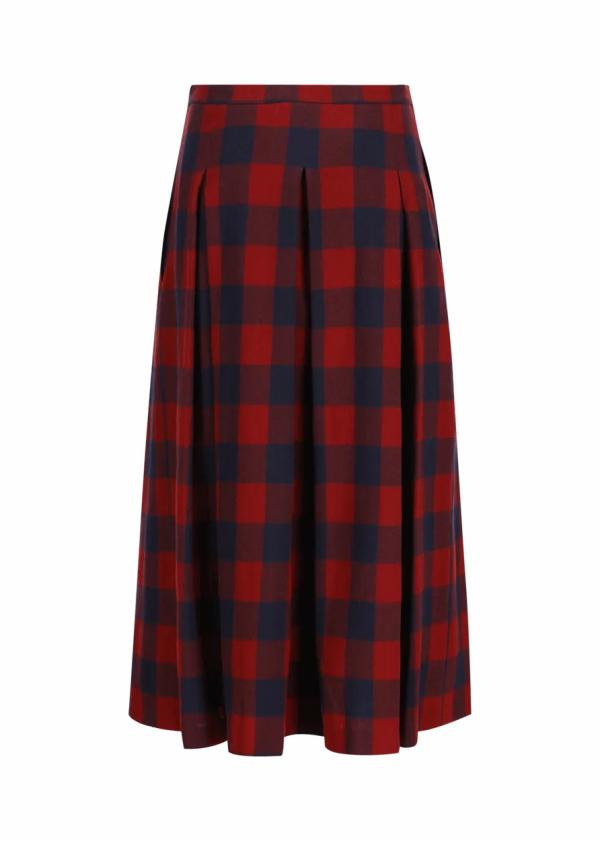 - Dieser ungefütterte, a-linienförmige Midirock im Comfort Fit besteht aus reiner Schurwolle mit Buffalo-Karomuster und besticht mit einer gestickten Bordüre als raffiniertes Detail an den Falten.