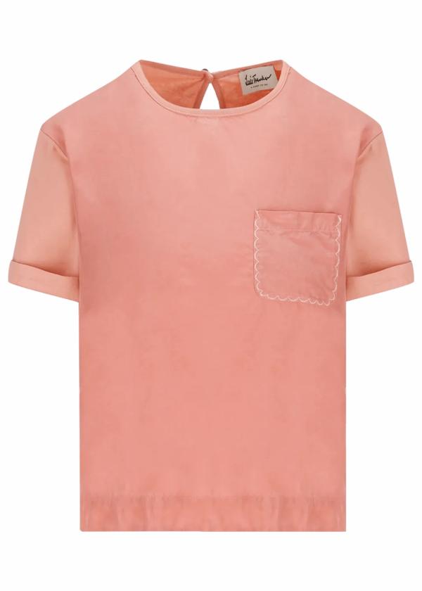Besonderheiten: Stückgefärbte Seiden-Baumwollmischung vorne, veredeltes Baumwolljersey an Rücken und Ärmeln, aufgesetzte Brusttasche mit gestickter Bordüre, tropfenförmiger Schlitz mit Knopfverschluss am Rücken - Unser Model Sophie ist 1,77 m groß und trägt Größe S.