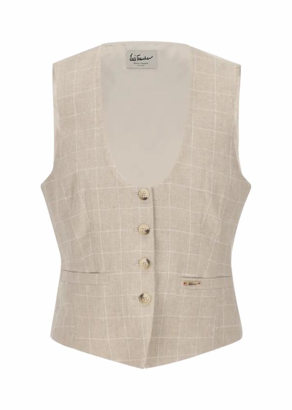 - Diese figurbetonte Weste im Slim Fit mit U-Ausschnitt und Rücken aus Viskose-Satin besteht vorne aus reinem Leinen mit Karomuster und sieht über einem T-Shirt ebenso toll aus wie über einer Bluse.