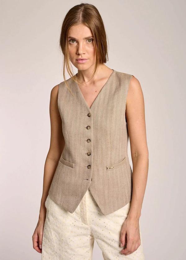 Damen Westen | Luis Trenker Weste Mit Fischgrätmuster Luraffaella Havana