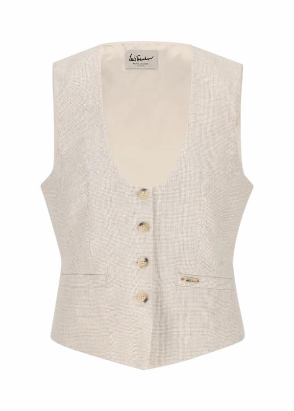 - Diese figurbetonte Weste im Slim Fit mit U-Ausschnitt und Rücken aus Viskose-Satin besteht vorne aus reinem Leinen mit Mini-Hahnentrittmuster und sieht über einem T-Shirt ebenso toll aus wie über einer Bluse.