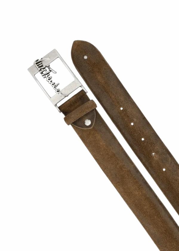 - Dieser Gürtel aus echtem Wildleder mit leicht gewölbtem Profil und metallischer Kastenschnalle mit Luis Trenker Logo ist ein zeitloses Accessoire, das jeden Deiner Looks abrundet.