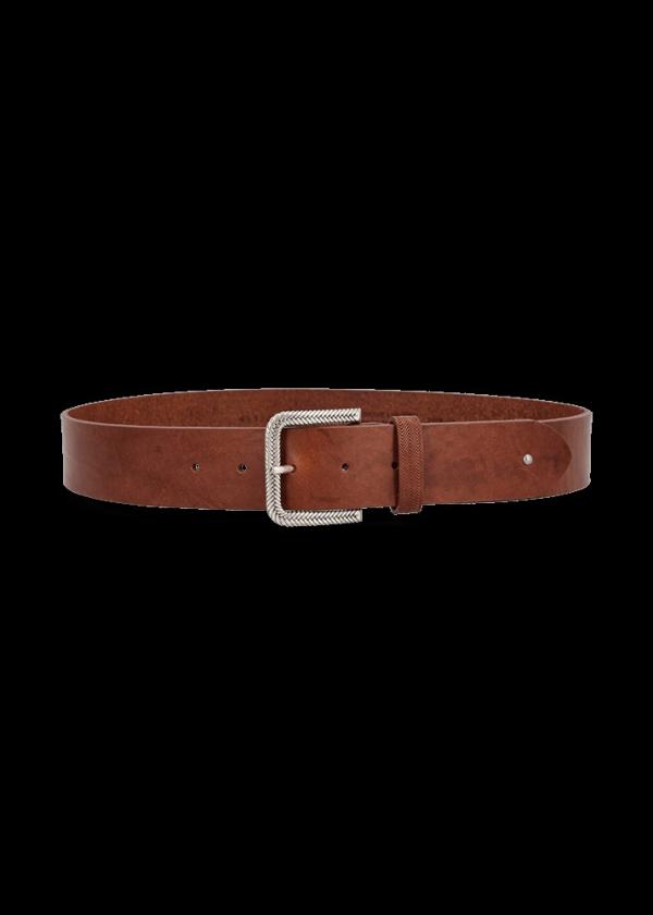 - Dieser Gürtel besteht aus echtem Glattleder, hat eine eckige Metallschnalle mit graviertem Flechtmuster und besticht durch den Luis Trenker Schriftzug aus kleinen metallischen Nieten an seiner Rückseite.