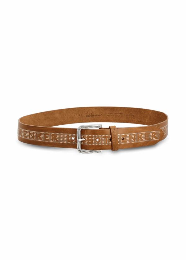 - Dieser Gürtel aus echtem Glattleder mit Nietenbesatz ist durch seinen All-over Luis Trenker Schriftzug ein Statement-Piece für bekennende Fans der Marke. Die metallische Schnalle erhält durch ihre Flechtoptik einen originellen Touch.