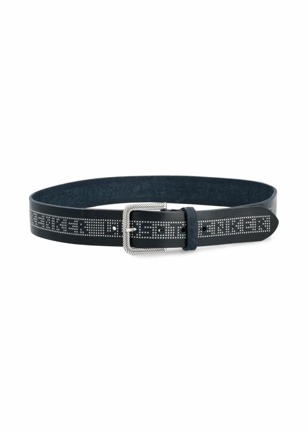 - Dieser Gürtel aus echtem Glattleder mit Nietenbesatz ist durch seinen All-over Luis Trenker Schriftzug ein Statement-Piece für bekennende Fans der Marke. Die metallische Schnalle erhält durch ihre Flechtoptik einen originellen Touch.