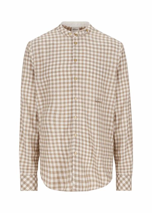 - Dieses lässige Hemd im Regular Fit mit Stehkragen besteht aus einer angenehmen Mischung aus Modal und Wolle mit Vichymuster.