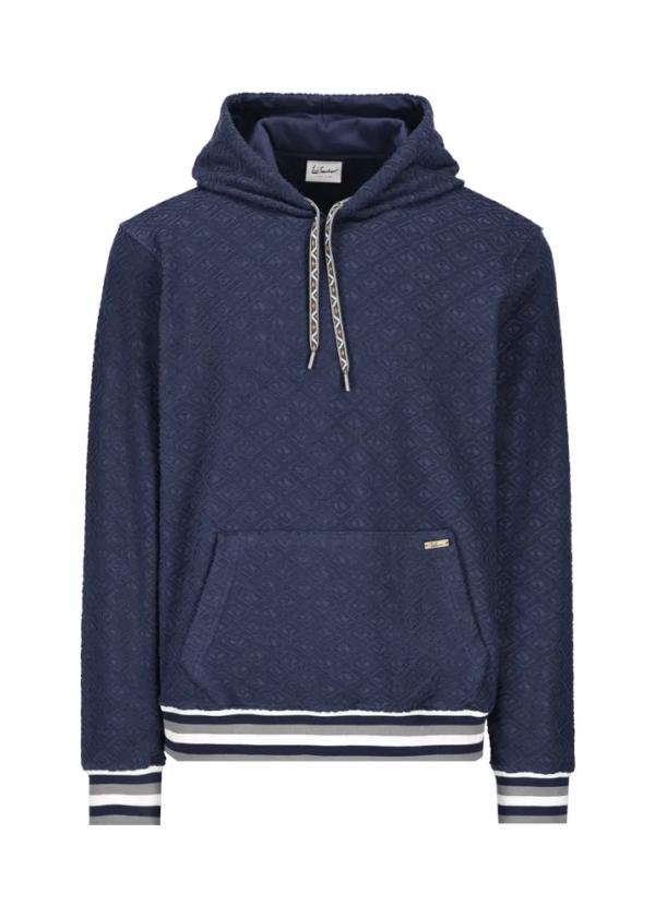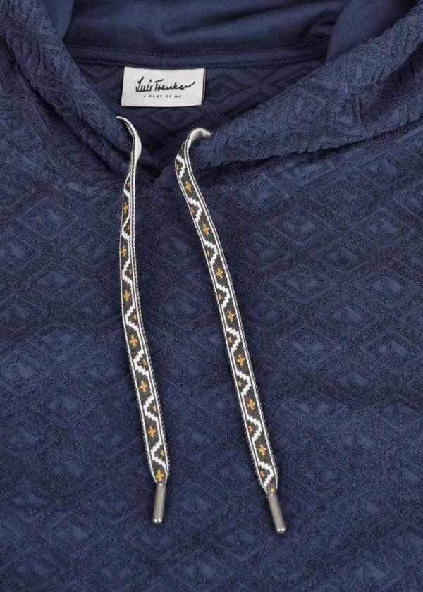 - Dieser Kapuzenpullover im Regular Fit besteht aus Baumwolle und Nylon, verarbeitet zu einem bequemen Jersey-Frottee mit exklusiv für Luis Trenker entworfenem All-Over Rautenmotiv aus den Initialen LT. Der Saum und die Bündchen im Rippstrick mit Streifenmuster, sowie die Bänder im Ethno-Look an der Kapuze unterstreichen seinen sportlichen Charakter.