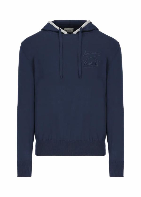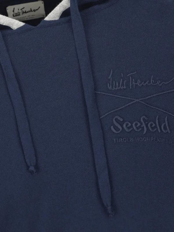 Besonderheiten: Saum und Bündchen im feinen Rippstrick, dezenter Farbkontrast an der Kapuze, Stickerei „Luis Trenker x Seefeld – Tirols Hochplateau“ an der linken Brust