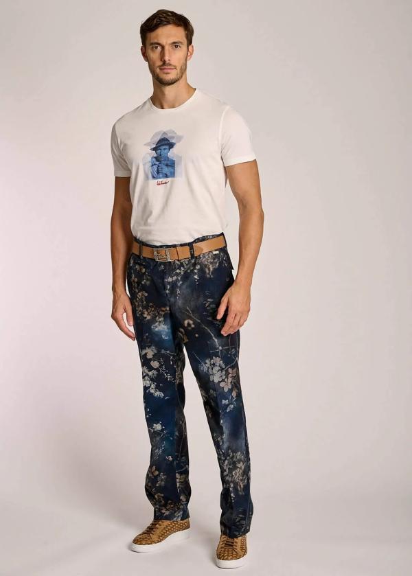 Besonderheiten: Baumwollcord in leichter Qualität, einzigartiges Blumenmuster, Knöpfe aus Echthorn, abnehmbare Kette als Blickfang an den Gürtelschlaufen, Saumumschlag, Bügelfalte, Logoplakette in Hornoptik an der linken Taille - Unser Model Federico ist 1,88 m groß und trägt Größe 50.