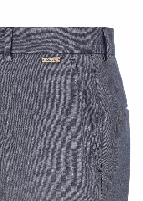 Taschen: Zwei seitliche Taschen, zwei Paspeltaschen mit Knopfverschluss hinten - Besonderheiten:Bügelfalte, Saumumschlag, Logoplakette in Hornoptik an der linken Taille