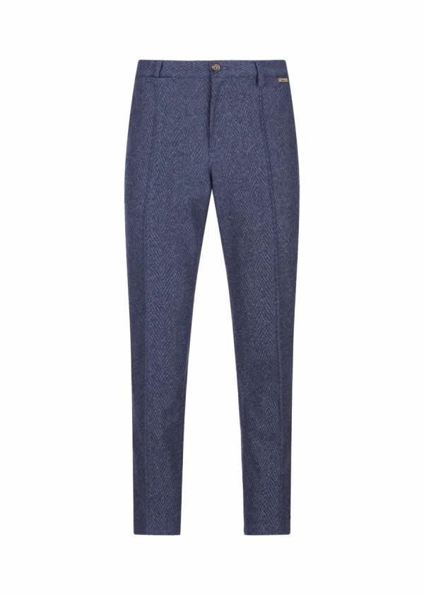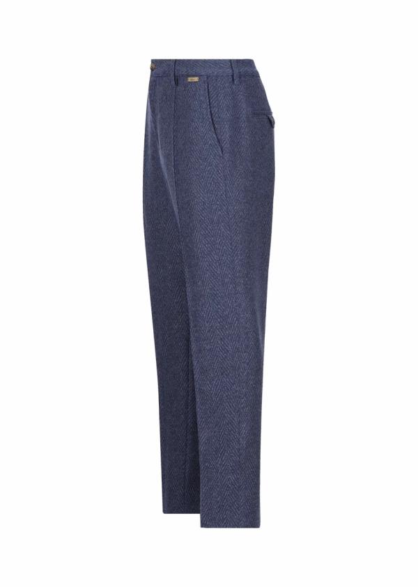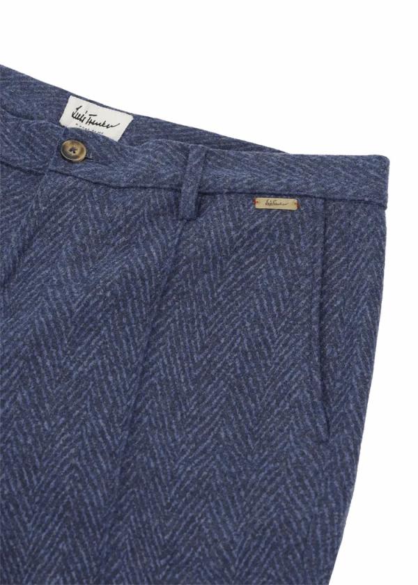Herkunft: Stoff aus Italien - Besonderheiten: Knöpfe aus echter Steinnuss, mittig verlaufende, leicht hervorstehende Naht am Vorderbein, Logoplakette in Holzoptik an der linken Hüfte