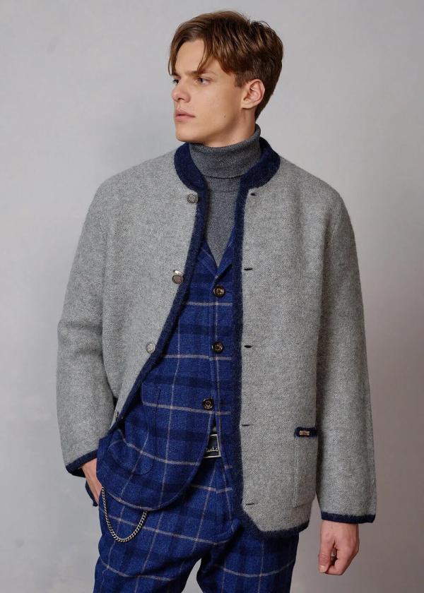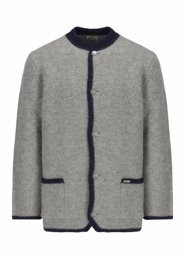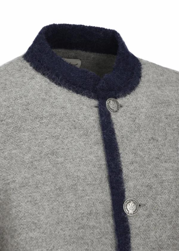 - Diese Outdoor-Walkjacke im Oversized Fit mit Stehkragen besteht aus einer warmen Mischung aus Alpaka- und Schafwolle. Sie ist eine moderne Interpretation des traditionellen Hofer-Jankers, welcher ab der Mitte des 20. Jahrhunderts in Salzburg auf ganz besondere Weise gefertigt wurde. Ihre von Natur aus windabweisende Funktion, ihre Bordüren in Kontrastfarbe und ihre edlen metallischen Knöpfe machen sie zum Herzstück unserer Outerwear.
