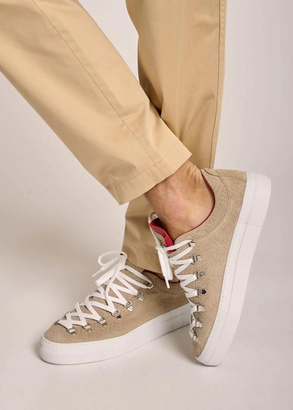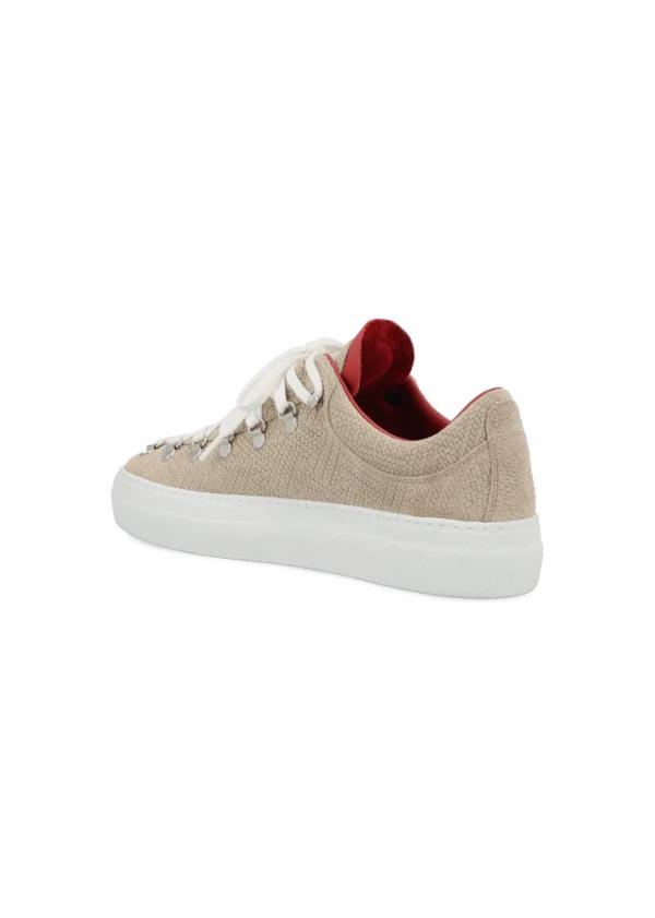 - Dieser Sneaker mit Plateausohle wurde aus feinstem Wildleder in Italien von Hand gefertigt und zeichnet sich durch seine extravagante Oberflächenstruktur aus. Die metallischen Ösen im Bergschuh-Stil verleihen ihm alpinen Charme, die atmungsaktive Kork-Innensohle sorgt für unvergleichlichen Komfort.