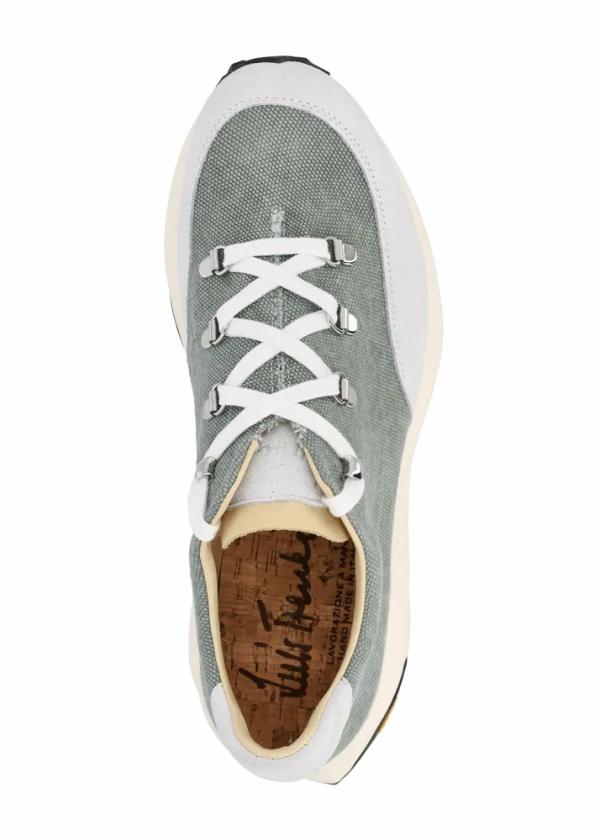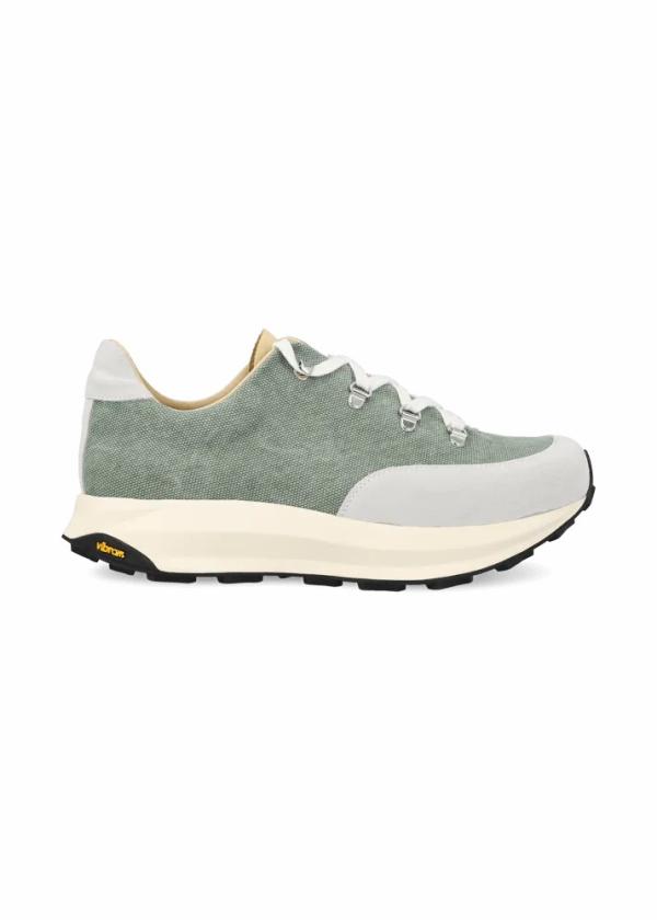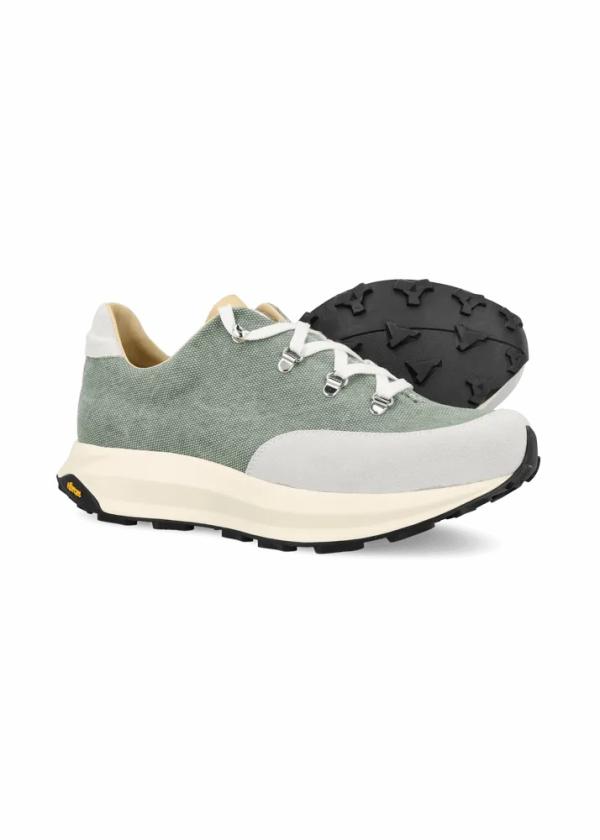 - Dieser handgefertigte Sneaker besteht außen aus Baumwollcanvas und Wildleder, während sein Innenfutter aus weichem Leder gefertigt ist. Mit seiner ergonomisch geformten Vibram-Plateausohle hebt er den Komfort auf ein neues Level.