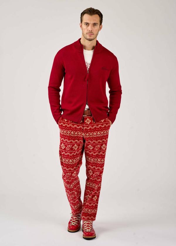 - Diese Strickjacke im Regular Fit mit Stehkragen und Zwei-Wege-Reißverschluss besteht aus feinster, glatt rechts gestrickter Merinowolle. Sie ist an Ausschnitt, Saum und Bündchen gerippt und trägt ein dezentes Ton-in-Ton Luis Trenker Logo aus Filz seitlich auf der Brust.