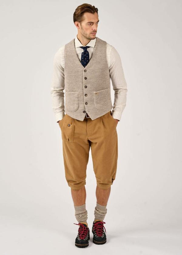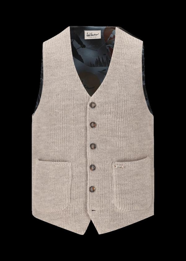 - Diese einreihige Weste im Regular Fit mit V-Ausschnitt besteht vorne aus reiner Schurwolle im Rippstrick, während ihr Rücken aus reiner Baumwolle gefertigt ist. Sie vereint zeitlose Eleganz mit alpinem Charakter – mit liebevollen Details, praktischen Taschen und einem einzigartigen Innenfutter, das für stilvolle Überraschungen sorgt.