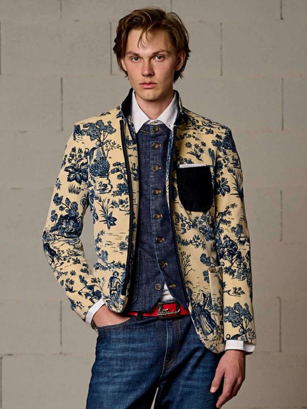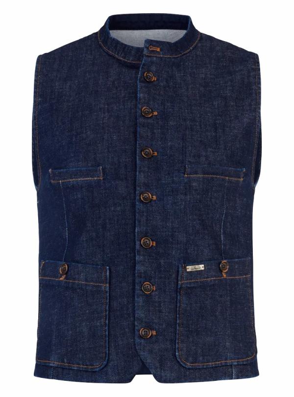 - Körpernah, zwei Paspeltaschen und zwei aufgesetzte Taschen mit Knopfverschluss, einreihige 7-Button-Front und Stehkragen mit Knopf, Knöpfe aus Bio-Horn, Weiteneinstellung am Rücken