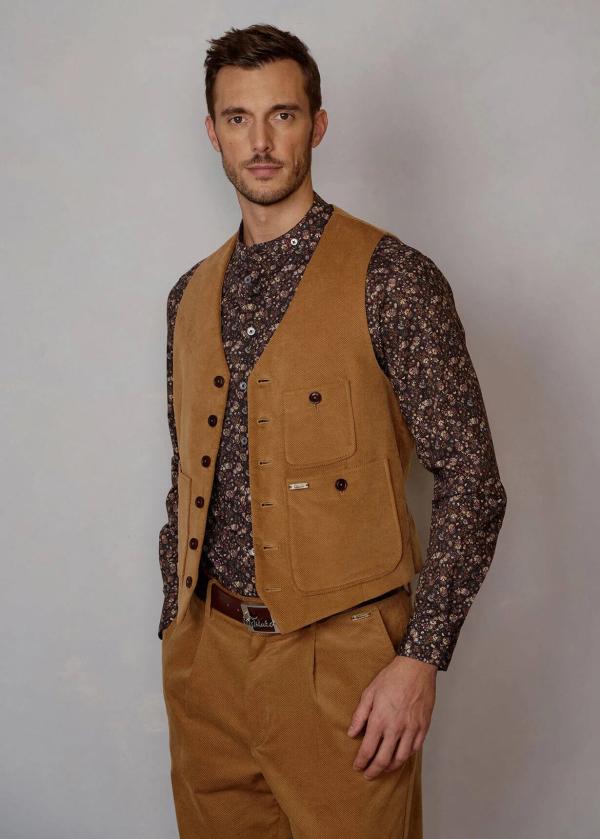 - Diese einreihige Weste im Regular Fit mit V-Ausschnitt besteht aus einem angenehmen Baumwoll-Stretchgewebe, verarbeitet zu einem diagonalen Samtstoff. Mit ihren drei aufgesetzten Taschen mit Knopfverschluss erinnert sie an eine Cargo-Weste und ist somit besonders für legere Casual Looks geeignet.