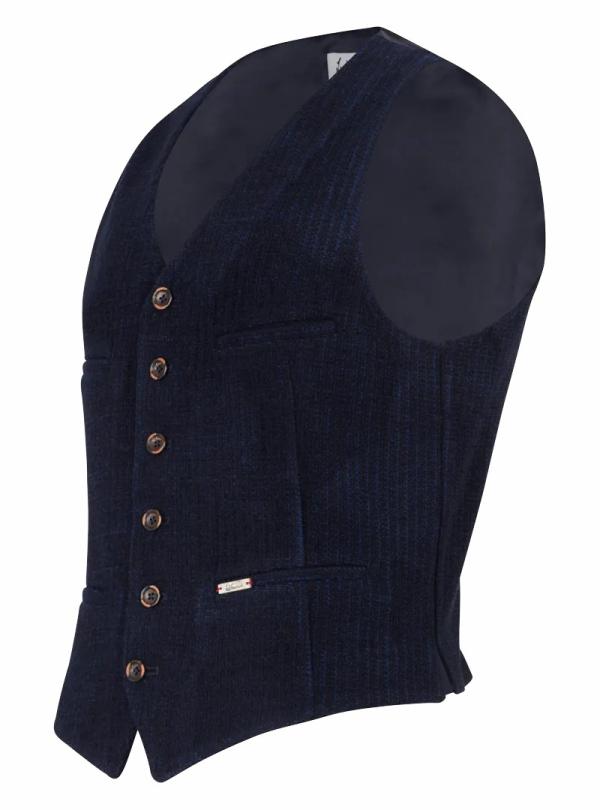 - Körpernah, vier Paspeltaschen, einreihige 6-Button Front, V-Ausschnitt, Satin-Rücken mit Weiteneinstellung, in Italien gefertigt, Knöpfe aus Bio-Horn