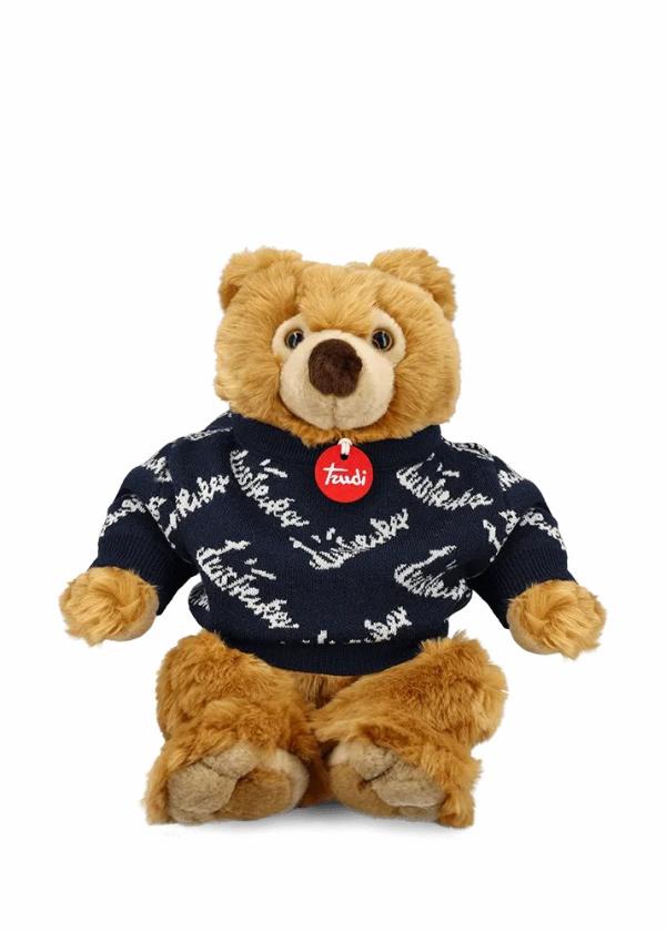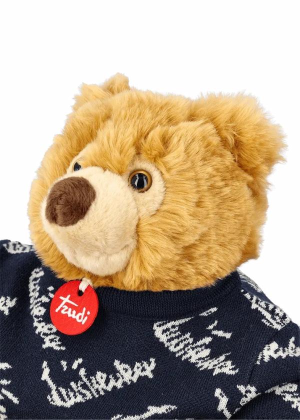 - Dieser niedliche Teddybär stammt vom italienischen Traditionsunternehmen Trudi, welches in den 1950er Jahren gegründet wurde und längst zu den Marktführern im Plüschtier-Sektor zählt. Mit unserem eigens gefertigten Miniatur-Strickpullover aus reiner Merinowolle mit All-Over Logo haben wir ihm den Trenker-Touch verliehen, auf den er gewartet hat.